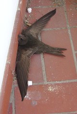 Auf Grund erhöhtem Flugverkehrsaufkommens kam es auf unserem Balkon schon wieder zu einem Flugunfall und vielen Beinaheunfällen. Bei dem Gedrängel war das auch vorherzusehen. Auf dem Foto sieht es allerdings schlimmer aus, als es wirklich war. Mein Hausmensch hätte allerdings erst mal fegen und ihn dann wieder hinlegen können. Aber das war ja hinter einer kleinen Bank, hinter die sich der offensichtliche Fluganfänger nach dem Absturz geflüchtet hat und die erst mal weggeräumt werden musste.